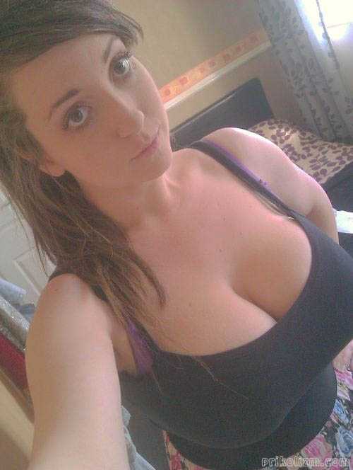 Большегрудая красотка делает селфи