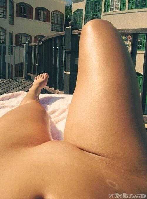 Загорает без трусиков, селфи ножек и лобка