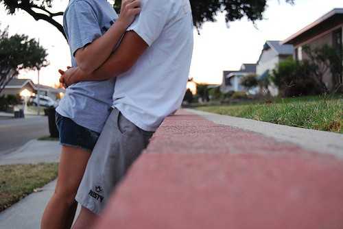 Парень “сидит” между ног девушки