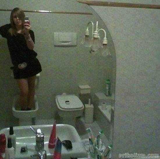 Фоткается стоя в биде