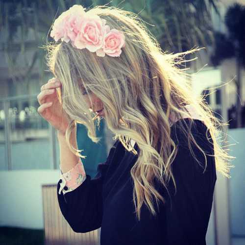 Девушка с цветами в волосах.