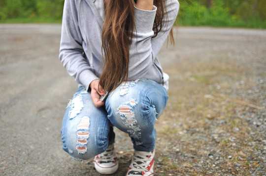 Девушка в рваных джинсах.