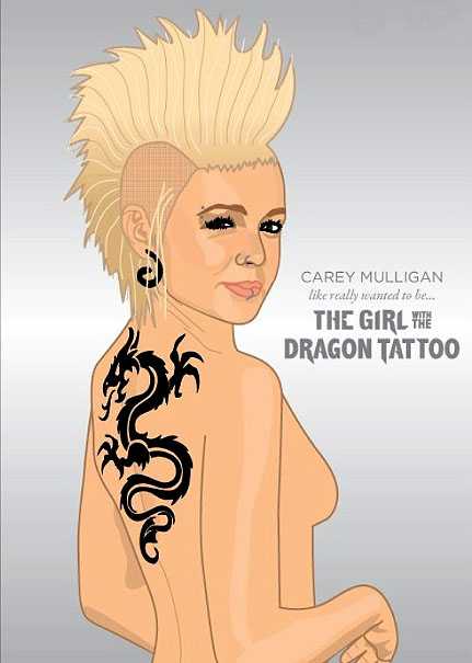 Эскиз Carey Mulligan с татуировкой дракона на спине
