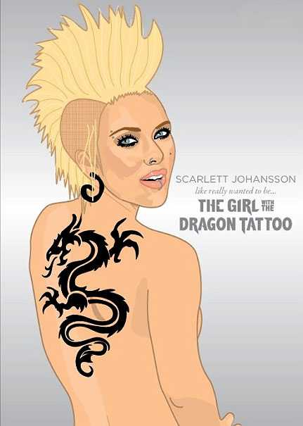Эскиз Scarlett Johansson с татуировкой дракона на спине