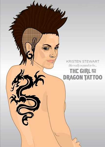 Эскиз Kristen Stewart с татуировкой дракона на спине