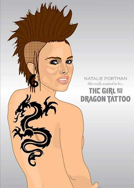 Эскиз Natalie Portman с татуировкой дракона на спине