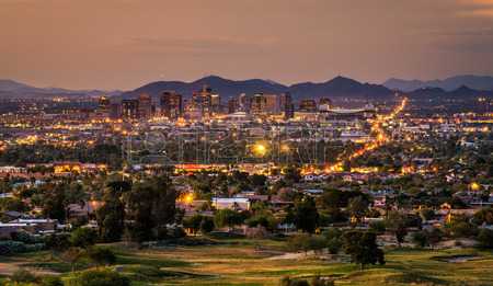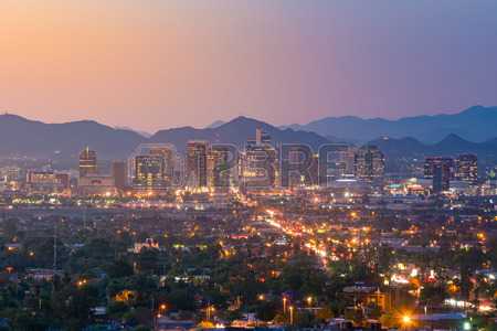 #62395654 – Top view of downtown Phoenix Arizona at sunset in USA