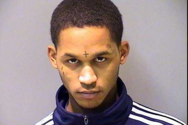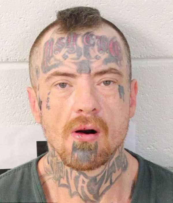Этого типа по имени Джером Смит задержали за то, что он при нападении на беременную девушку, ударил ее пистолетом по голове.. Слово “гений” на его лбу имеет несколько грубых ошибок – оно должно бы было выглядеть, как “идиот”.