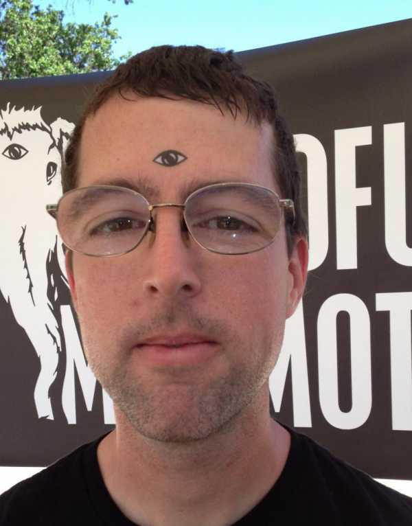 Если вы не сразу поняли в чём тут дело: да, этот «гений» набил себе на лице рисунок в виде очков.