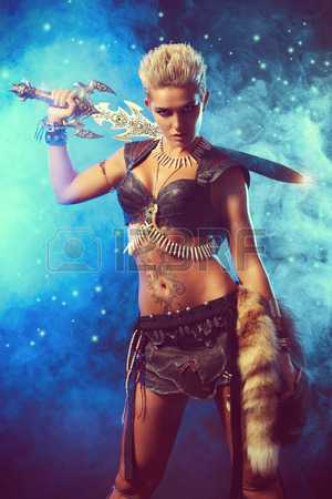 #35134923 – Portrait of a beautiful female warrior in battle. Ancient times…