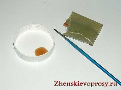 Много краски не понадобится. Используем маленькую крышечку, которую после использования можно выкинуть.