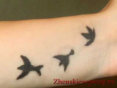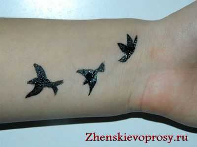 Даем время высохнуть нашим птичкам (приблизительно полтора часа). За это время тату покроется сухой корочкой, которую нужно легонько смыть теплой водой. Временное тату на запястье готово!
