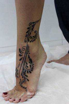 2. Чтобы упростить задачу сложного выбора правильного смысла татуировки выбирайте небольшой орнамент. Такая татуировка не будет нести какой-либо подтекст, и смотреться будет неплохо. Однако нужно учитывать, чтобы очертания орнамента повторяли анатомическую форму той части тела, на которую вы будете её наносить. К примеру, на плече прекрасно смотрятся овальные тату или орнамент с закругленными краями. На шее и ключице короткие надписи. А вот небольшие удлиненные рисунки и надписи предназначены для нанесения на лодыжку.