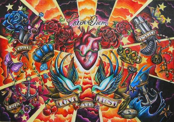 • Обратите внимание на другие уже существующие татуировки и дизайны, хотя не стоит себя этим ограничивать. Просмотрите книги, плакаты, наклейки, все то, что привлечет ваше внимание.