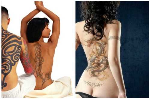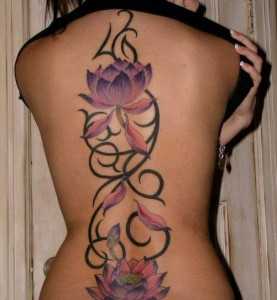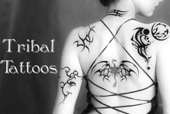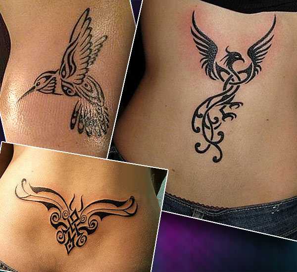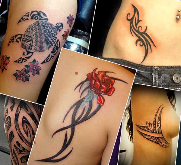 Девушки выбирают утонченные изящные композиции в стиле трайбл, в основном они наносят их в области спины (между лопатками или на пояснице), в области голени и бедер. Красиво и оригинально смотрятся женские татуировки сбоку тела, а так же на плечах и запястьях.