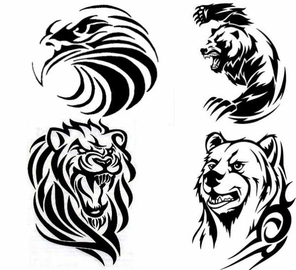 Эскизы трайбл тату могут состоять не только из набора линий или геометрических фигур. Существуют также рисунки с животными, опоясанными по кругу причудливыми элементами орнамента. Значение трайбл тату анималистического типа может раскрывать некоторые качества его обладателя. Вот несколько примеров: