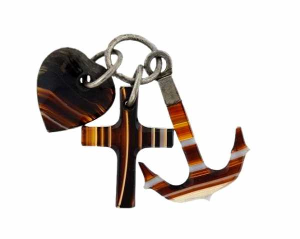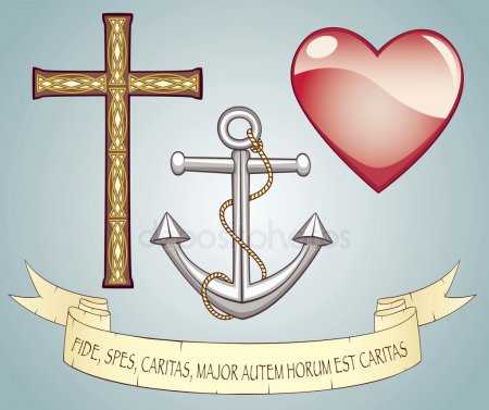 Три знака, триада Крест – Якорь – Сердце, как утверждают историки, вот уже тысячи лет служат аллегорией для обозначения трех главных христианских добродетелей: веры, надежды и любви. Все вместе они символизируют Святую Троицу.