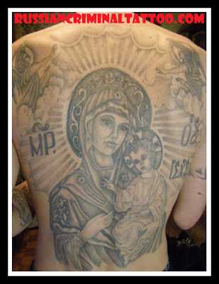 Изображения монастырей, церквей, соборов, Девы Марии, святых и ангелов, обычно на груди и спине, означают принадлежность к воровскому миру и его «понятиям». Татуировки в виде черепов, в некоторых местах сопровождаемые изображением улетающего ангела, говорят о том, что заключенный был осужден за убийство. Гроб – еще один знак убийства, в нем хоронят убитого.
