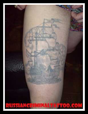 Эта татуировка является вариацией на тему мифа о Прометее, который после обмана Зевса был навечно прикован к скале в наказание. Корабль с белыми парусами означает, что носитель зк-тату не участвует в нормальной работе, он – бродяга-вор и склонен к побегу.