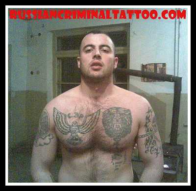 Татуировки на теле этого заключённого описывают самые авторитетные символы: зк тату показывают, что носитель принял на себя «судьбу вора». Тем не менее, на нём нет «звезд вора», значит человек не является «вором в законе» и, следовательно, не имеет никакой реальной власти среди воров.