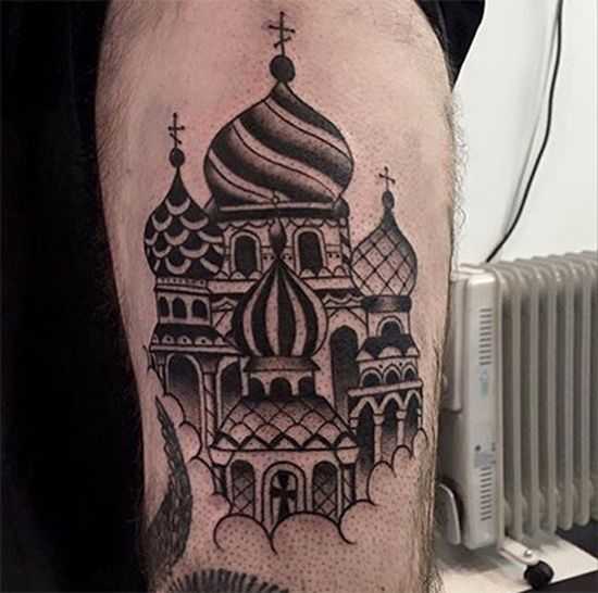 «Храм с куполами — одна из самых распространенных тюремных татуировок. Когда человек попадает в тюрьму — ему набивают купол. Когда он полностью отбывает свой срок — на куполе появляется крест. Татуировка с куполами без крестов у человека на свободе сразу вызывает много вопросов; люди “в теме” однозначно будут смотреть на него с подозрением».