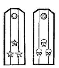 Форма эполетов, вытатуированных на плечах, заимствована или из дореволюционной формы, или из существующей советской, оба варианта говорят о негативном отношении их обладателя к системе. Эти татуировки встречаются у криминальных авторитетов, носящих такие клички, как «майор» или «полковник». Эполеты с тремя маленькими звездами или черепами можно расшифровать так: «Я не раб лагерей, никто не в силах заставить меня работать», «Я узник, но рожденный свободным», «Я полковник в зоне – не буду пачкать руки о тачку», «Сильные побеждают – слабые умирают», «От работы лошади дохнут».