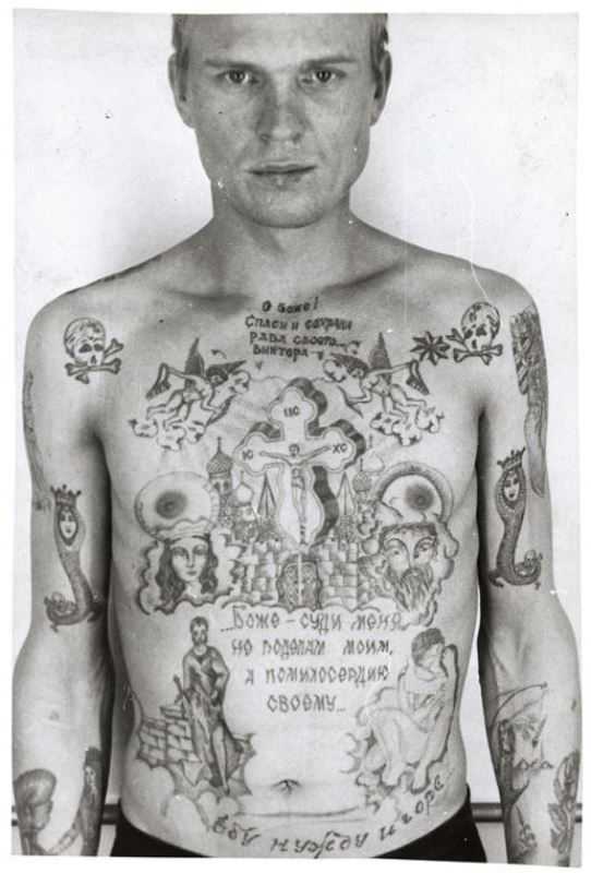 Начиная с 30-х годов в Советском Союзе ситуация несколько изменилась. Татуировки были вынуждены изучать, потому что они стали своебразным орудием уголовного мира. Ни в одной стране мира зэки не были настолько сине-фиолетовыми, как у нас (конкурировать с ними могли лишь японские якудзи или воины китайских триад). Корни этого феномена кроются там же, где и корни всей тюремно-лагерной субкультуры. Еще пять-шесть лет назад криминалисты из Америки, Германии, Франции скептически относились к каталогам татуировок и снисходительно отказывались от информационной помощи в этом вопросе.