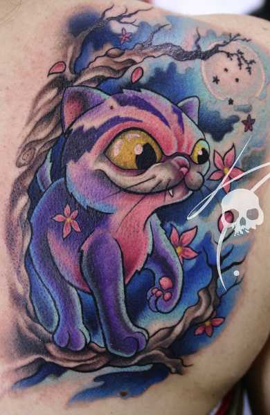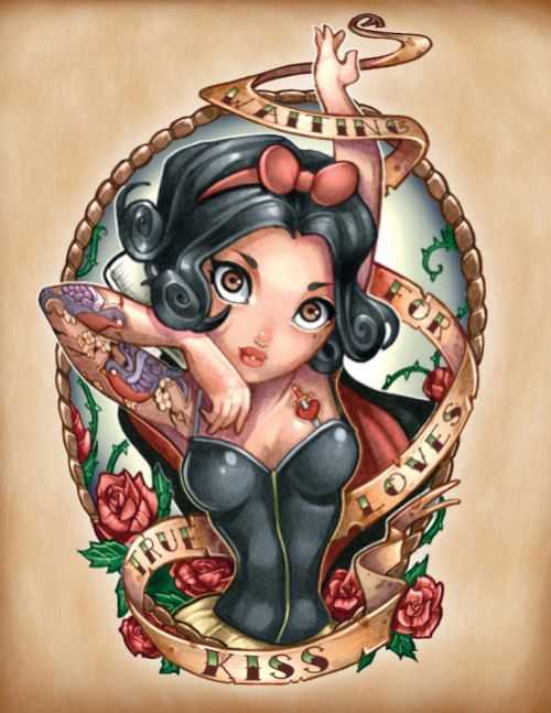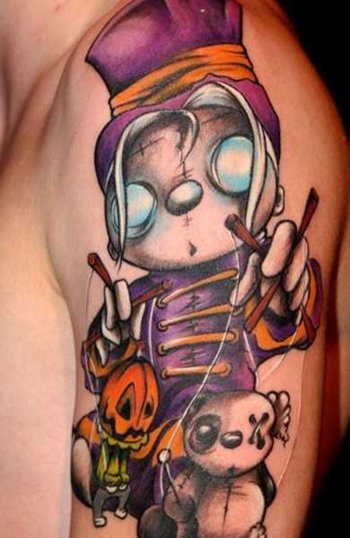 По сравнению с Олд скулом данное направление в области наколок имеет свою сюжетную линию. Очень часто здесь применяются смешные персонажи из популярных мультиков и различные сюжеты из комиксов. Самыми популярными изображениями в этом жанре являются: