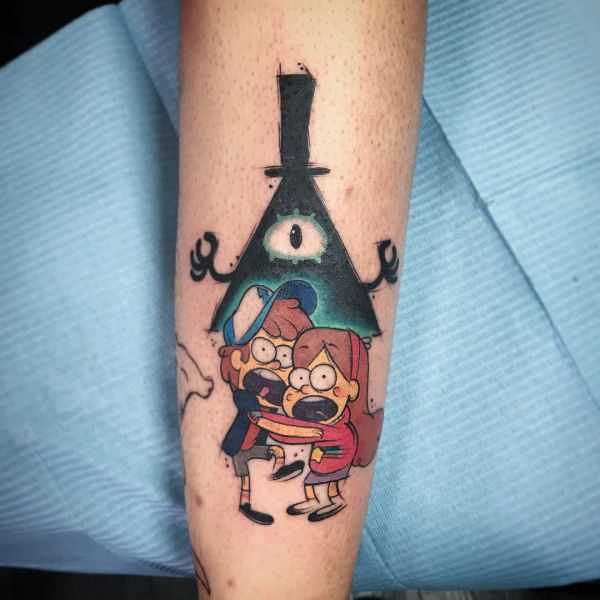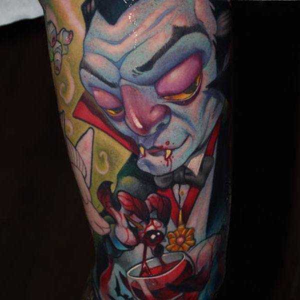Тематика и сюжетная линия данного направления отличается от олдскул тату. Здесь вы легко можете встретить смешных мультипликационных героев или популярных персонажей из комиксов. Среди наиболее популярных изображений в сфере татуировок нью скул можно выделить следующие: