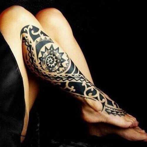 Такие татуировки часто выглядят массивными композициями с агрессивным посылом. Основными элементами татуировок из Полинезии являются разнообразные линии, зигзаги, волны и всевозможные фигуры. В них преобладает черный пигмент, а все контуры и абстракции имеют четкие линии. Большую роль играет симметричность всех элементов, которая помогает превратить их в единое целое. Если говорить про женские татуировки, то даже в полинезийском стиле иногда встречаются яркие вкрапления других цветов.