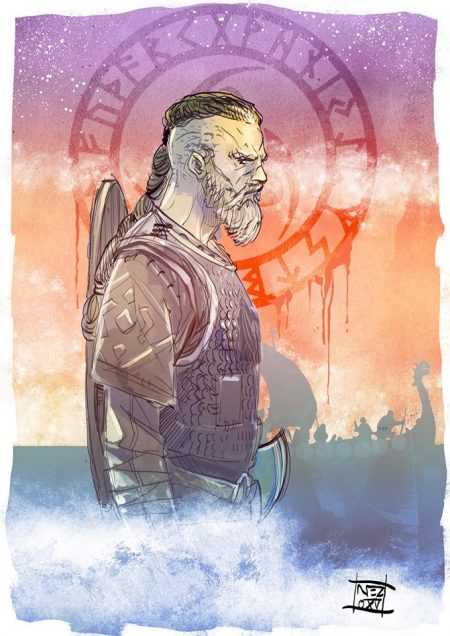 Приветствую уважаемые читатели, сегодня, в этой скромной статье, познакомимся с артами, рисунками и эскизами и их авторами на тему одного из самых узнаваемых персонажей Скандинавской тематики — Рагнара Лодброка из культового сериала «Викинги»