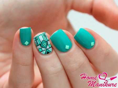 Этнический дизайн можно отнести к графическому маникюру, так как в нем используются комбинации линий, точек, кругов, зигзагов и других геометрических форм. Контуры обычно выполняют черным цветом, но при желании вы можете использовать любые другие оттенки. Комбинировать эти фигуры можно на свое усмотрение, создавая неповторимые рисунки и подчеркивая свою яркую индивидуальность.