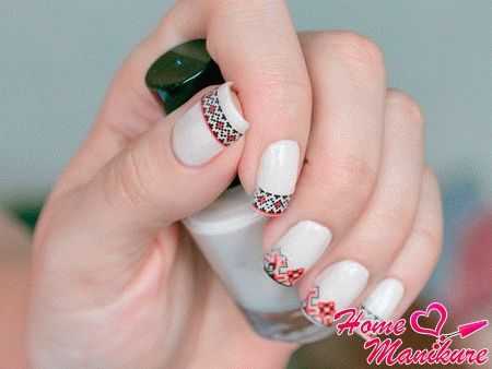 Великолепно смотрятся на ногтях славянские мотивы. Близкие нам по духу, они ассоциируются с румяными и белокурыми русскими красавицами. Такой вариант прекрасно подойдет к летнему платью, внося особенный шарм в ваш образ.