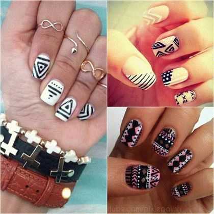 Мы видели племенной принт на одежде, он нашел место среди ювелирных украшений, теперь мы можем иметь его и на своих ногтях. Самое лучшее в дизайне ногтей с этническими узорами то, что можно объединять и комбинировать геометрические фигуры на свое усмотрение. Нет никаких сомнений, что создание такого детального маникюра отнимет у вас часть времени, это довольно кропотливая работа.