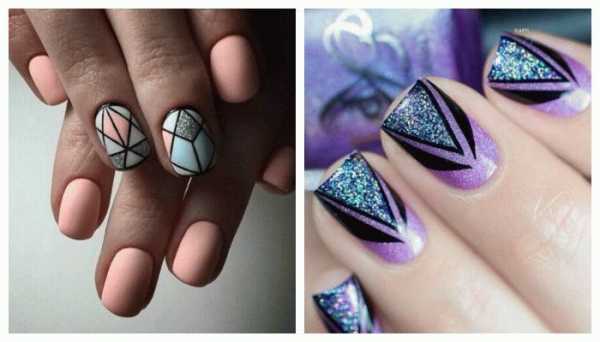 Фигуры нарисовать очень легко. Они не перегружают общую картину, а являются ее гармоничным дополнением. Вариантов таких рисунков великое множество. Это может быть всеми любимый горошек или прямые, волнистые линии. Геометрические рисунки позволяют корректировать форму ногтей. Вертикальные линии визуально удлиняют ноготь, а горизонтальные наоборот укорачивают.