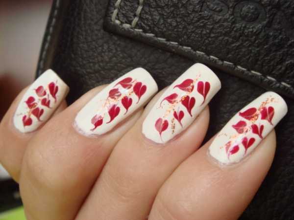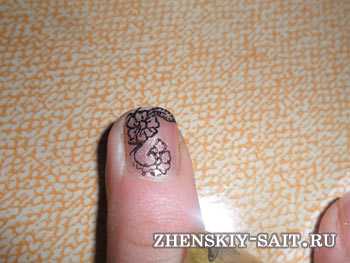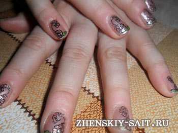 Трафарет можно купить в любом специализированном магазине. Он представляет собой липкую бумагу с вырезанным рисунком. Трафарет клеят на ногти, рисунок закрашивают ручкой. Когда узор высохнет, бумагу необходимо снять. После высыхания, ноготь покрывается защитным лаком. С помощью трафаретов можно аккуратно нарисовать цветы, сердечки, хохлому, игрушки, зверей и т.д.