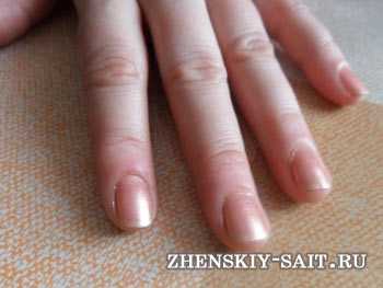 На очищенные ногти наносим бежевый лак. И ждем пока он высохнет.