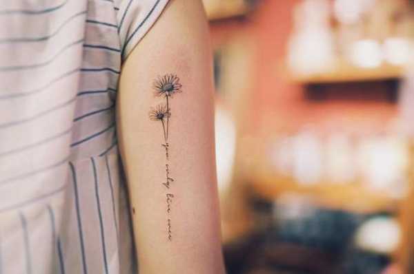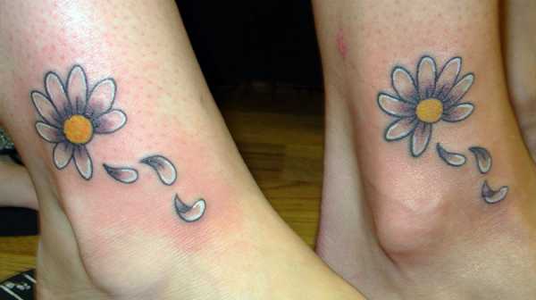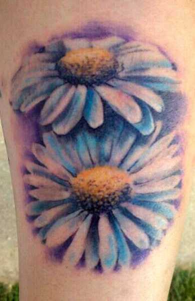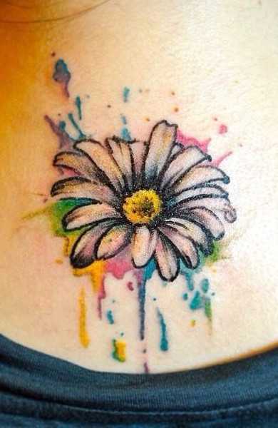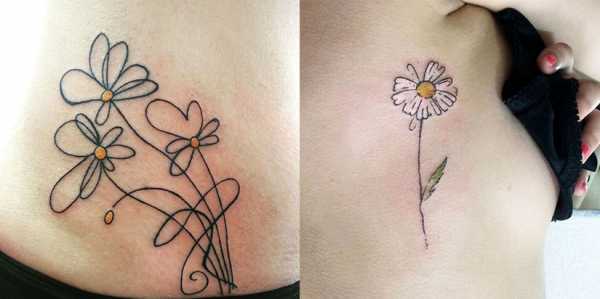 Одним из популярных тату цветков является ромашка, которая издавна обозначала солнце, любовь, молодость, нежность, наивность, доброта, чистота. Сейчас изображение цветка очень часто себе наносят на тело девушки.