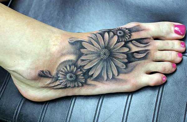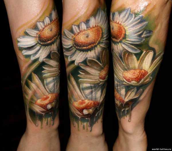 Сфера художественной татуировки является очень популярной. С каждым днем все больше людей приходят к мысли украсить свое тело татуировкой. Нательные изображения пользуются популярностью среди лиц обоих полов. Татуировки, которые выбирают мужчины, отличаются своей брутальностью, темными тонами, строгостью и агрессией. Женские нательные рисунки несут в себе нежность, яркость, женственность, красоту, игривость и кокетливость. Большинство девушек предпочитают наносить на свое тело именно изображения различных цветов: розы, пионы, орхидеи. Так же оригинально, нежно и женственно на теле девушки выглядит татуировка с изображением ромашки. Еще с древних времен этот яркий, светлый цветок несет в себе положительную трактовку. Ромашка является знаком солнца, молодости, нежности, любви, добра, наивности и чистоты.