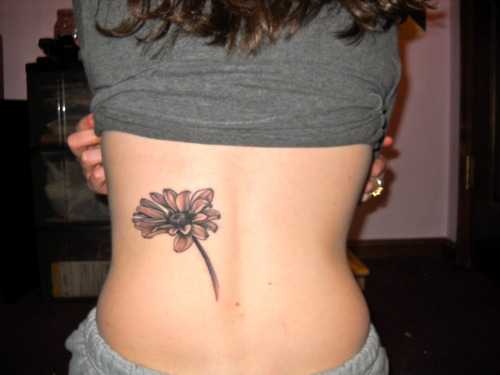 Тату ромашки на спине у девушкиЕще одна тату в формате вызова предполагает лепестки вокруг сосков. Выглядит необычно. Впрочем, такую татуировку следует считать интимной, т.к. увидят ее единицы – парень/супруг, близкие подруги. Смысл делать этот вариант есть только в том случае, если вы планируете сделать кому-то сюрприз. Впрочем, не исключен и вариант с подарком самой себе. Ведь это только ваше тело, и вы ни перед кем не должны отчитываться по поводу того, какие татуировки на нём делаете.
