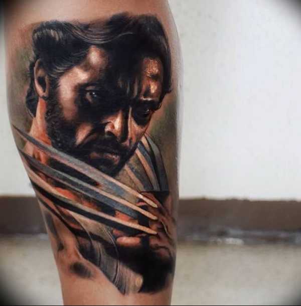 Весьма популярны татуировки с Росомахой-супергероем. Сакрального смысла у них нет. Каждый обладатель волен вложить в тату своё собственное значение. Конечно, такое изображение расскажет о том, кто является кумиром его обладателя, и каким он хотел бы выглядеть в глазах окружающих.