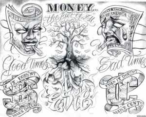 Долгое время такое тату наносили только те, кто связан с преступным миром, но позже этот стиль стал доступен для всех, не обозначая какого-то дурного смысла.