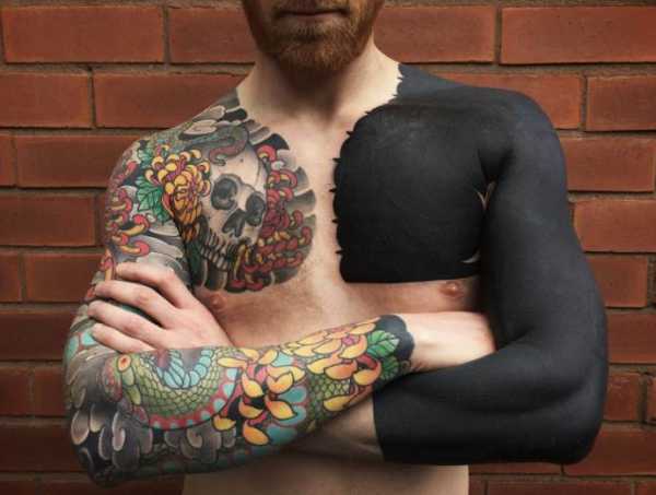 Большая часть людей старается наносить небольшие татуировки. Но есть и настоящие ценители, которые делают татуировки-рукава, которые полностью имитируют одежду.