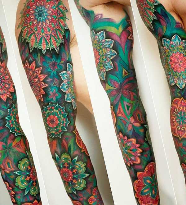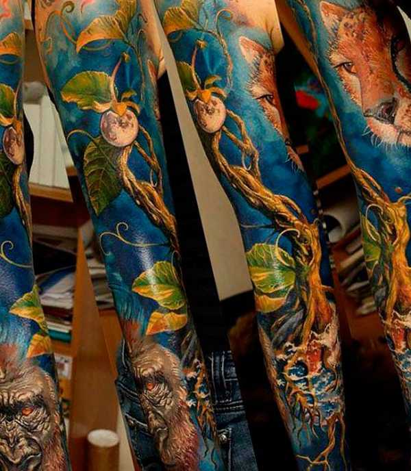 Как правило, мужчины выбирают длинный рукав или три четверти, девушки – половину или четверть. В мужском варианте классически преобладают жесткие линии, женские тату более мягкие. Впрочем, выбор эскиза и тематики изображения ограничен только полетом Вашей фантазии. Блэкворк или обилие красок? Один сюжет или переплетение множества? Абстракции, узоры, животные, кельтские, скандинавские, полинезийские, японские мотивы, цветы – не возможно перечислить всех вариаций исполнения этого произведения искусства. Бывает и так, что рукав состоит из абсолютно не связанных между собой рисунков. Причиной тому нанесение отдельных изображений и дальнейшее объединение их в общий сюжет. Если Вас интересуют татуировки рукава, фото самых разных вариантов Вы встретите в нашей статье.