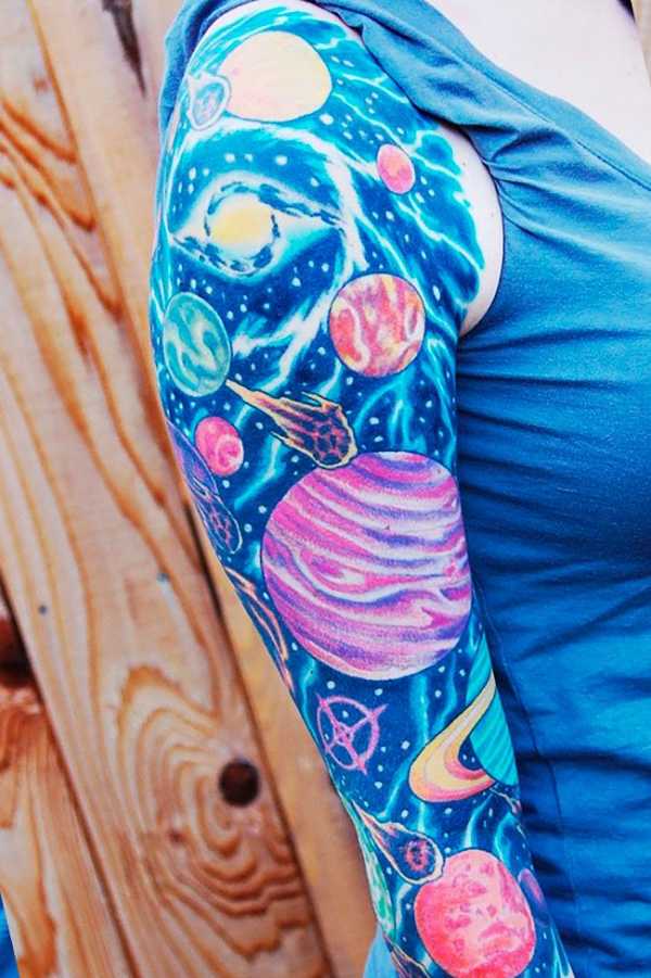 Можно делать полный рукав – от шеи до кисти, можно полурукав – от локтя до кисти (предварительно изучив фото). Процесс нанесения тату-рукавов длительный и недешевый, поэтому стоит хорошенько подготовиться.