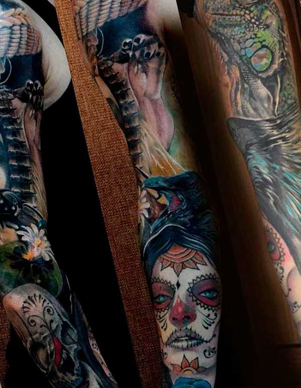 Рукава считаются одними из самых сложных в исполнении татуировок. Продумывание общей темы, главенствующего настроения, разработка эскиза, дороговизна, болезненность и длительность нанесения требуют огромной работы и от мастера, и от заказчика. Но результат того несомненно стоит.