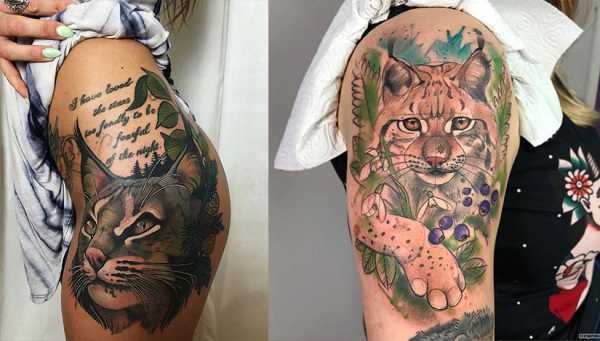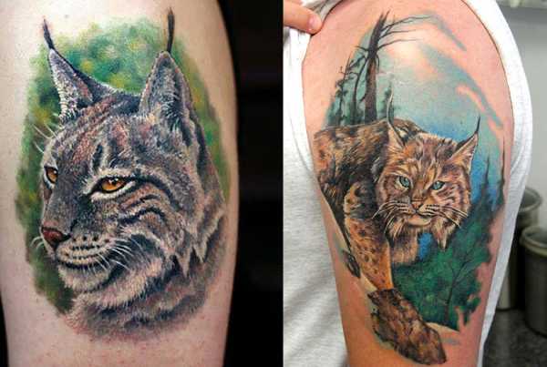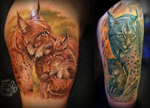 Тату рысей самец и самка создали пару на всю жизнь, рысь с маленьким рысенком (с права)Так что, если вы поклонник лёгкой жизни без привязанностей, татуировка рысь явно не подходит для выражения ваших принципов.