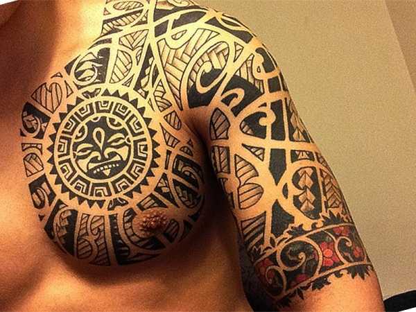 Мужчины располагают татуировки в верхней части груди. В этой зоне можно нанести рисунок достаточно масштабный. Красиво смотрятся симметрические рисунки.