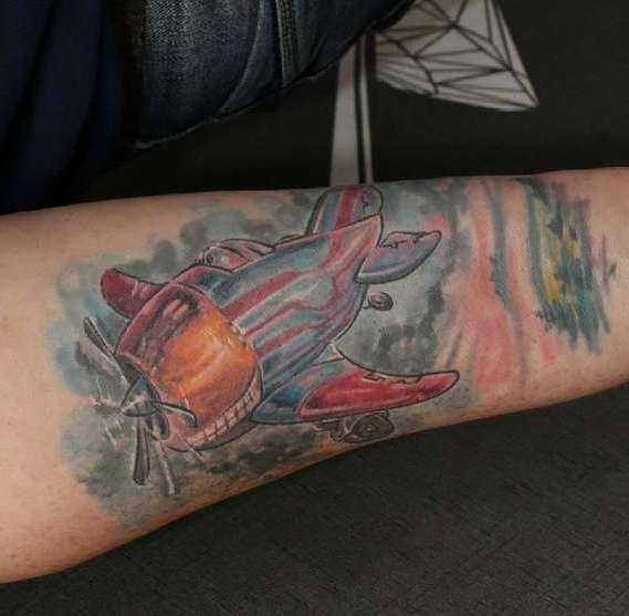 Татуировка самолета кукурузника на руке