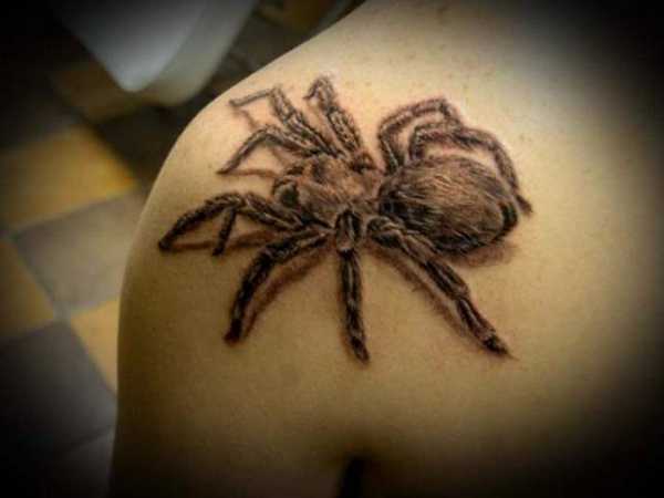 Самые эффектные рисунки тарантула получаются в технике 3D. Изображение выглядит настолько реалистично, что складывается впечатление, будто паук действительно ползет по телу. Такая работа требует высокого уровня художественного мастерства, поэтому к выбору татуировщика следует подойти ответственно. Для нанесения больших композиций подойдут рука, спина, плечо, нога.